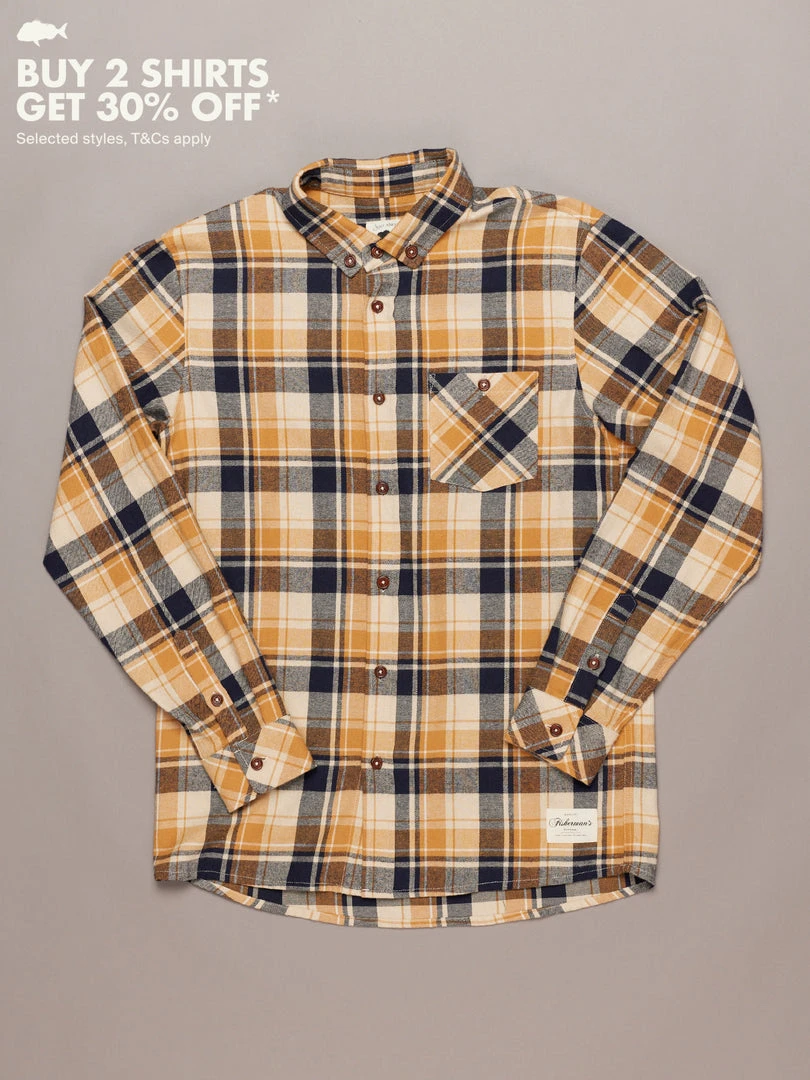 Just Another Fisherman Apparel BOATYARD SHIRT – BONE BROWN/NAVY CHECK