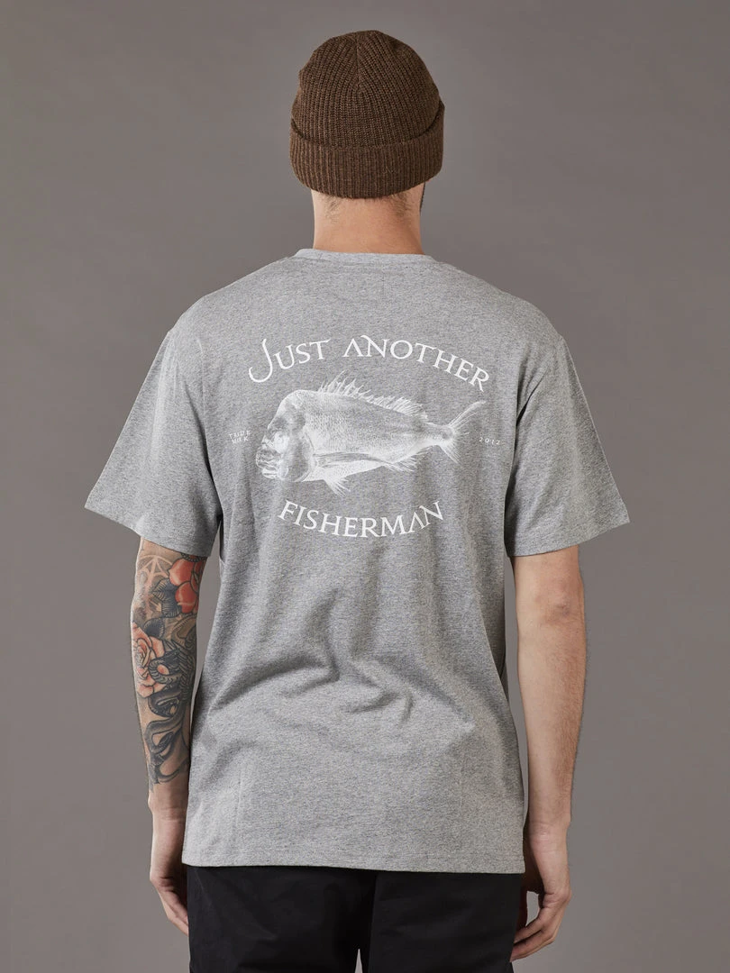 Just Another Fisherman Apparel SNAPPER LOGO TEE – GREY MARLE / WHITE