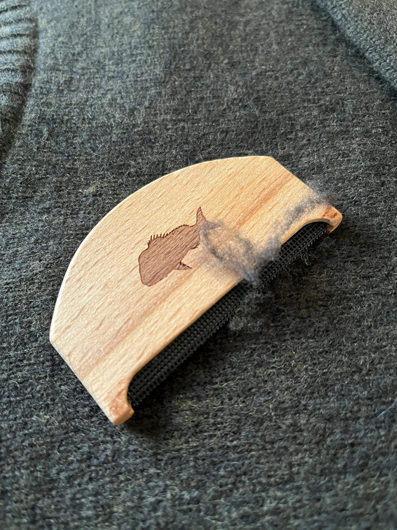 Directions: A few brushes with the comb in one direction across the knitwear surface will help remove pilling or lose fibres that may occur naturally.