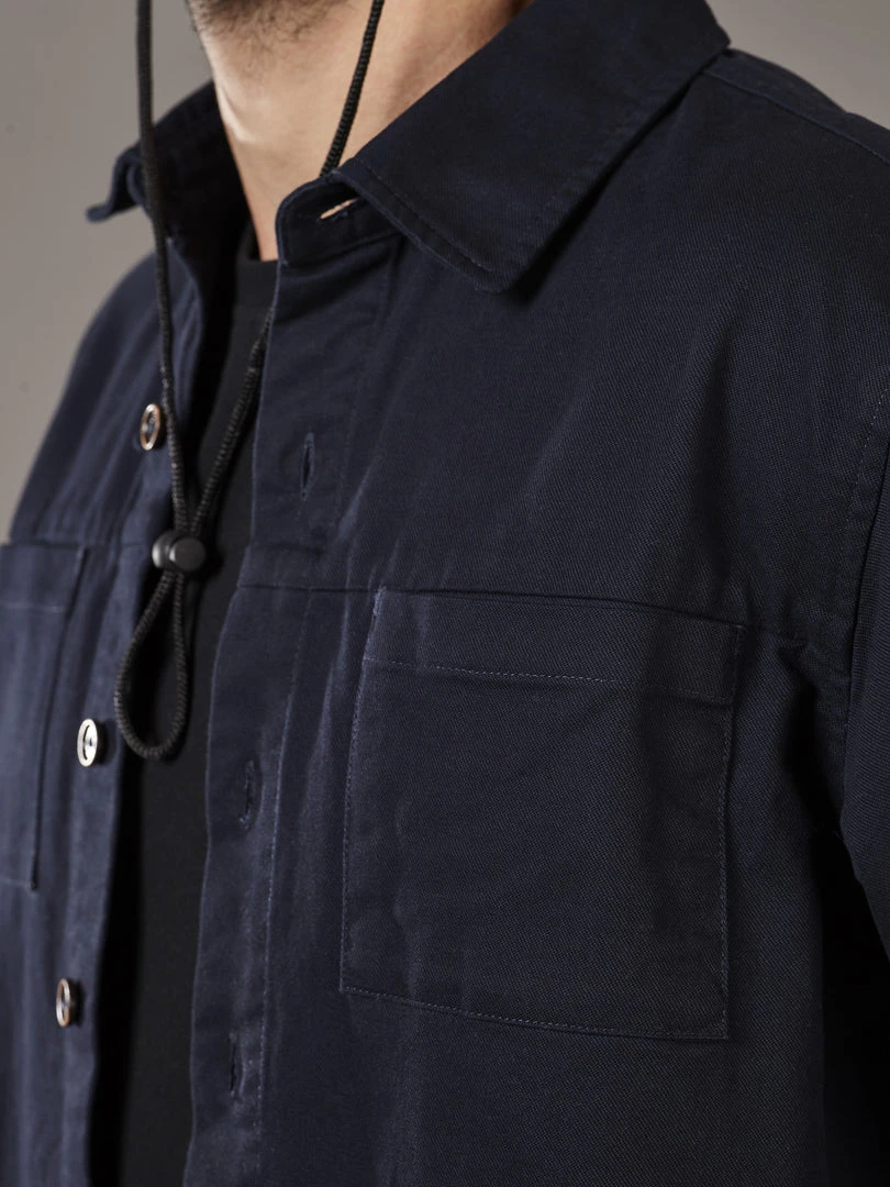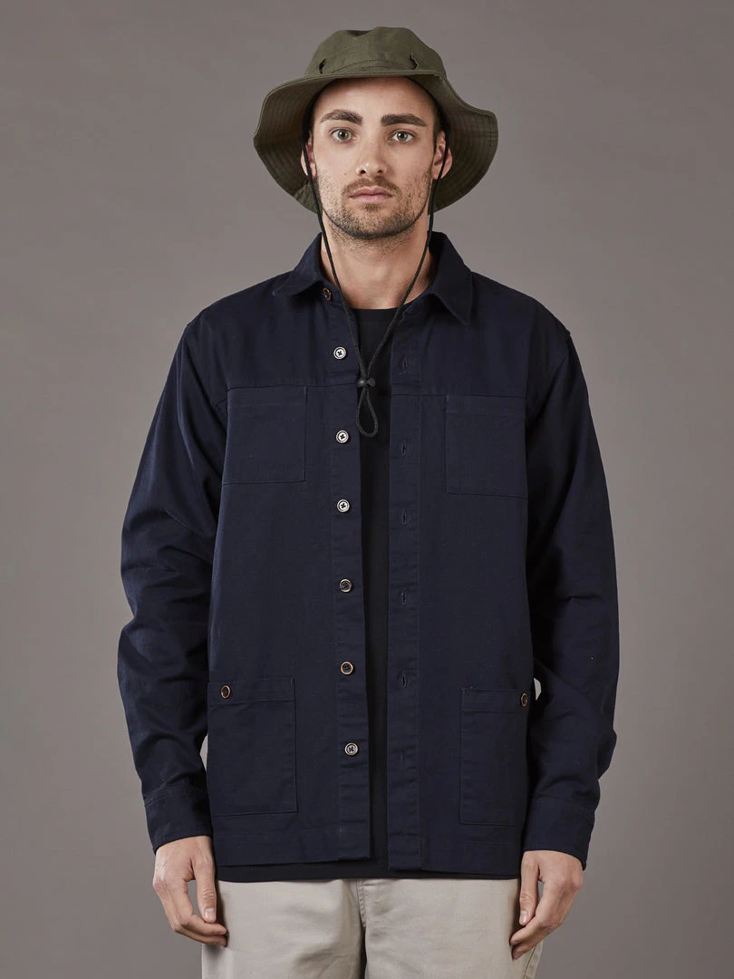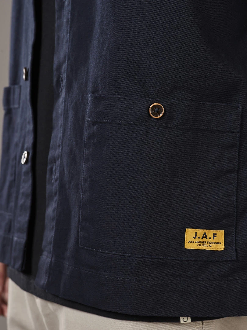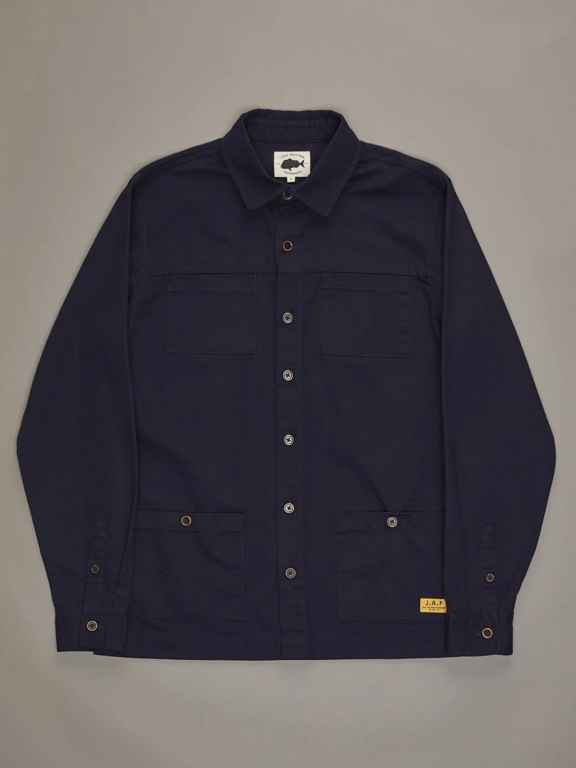Our workshop-inspired ‘shacket’ (half Shirt, half Jacket) is something you can layer up with a hood, knitwear, or wear on its own and get a good day’s work done. Our Rigger jacket is a hardwearing 100% cotton drill featuring four outer patch pockets and one inner pocket. It has fannel binding details and finished with J.A.F branding.
